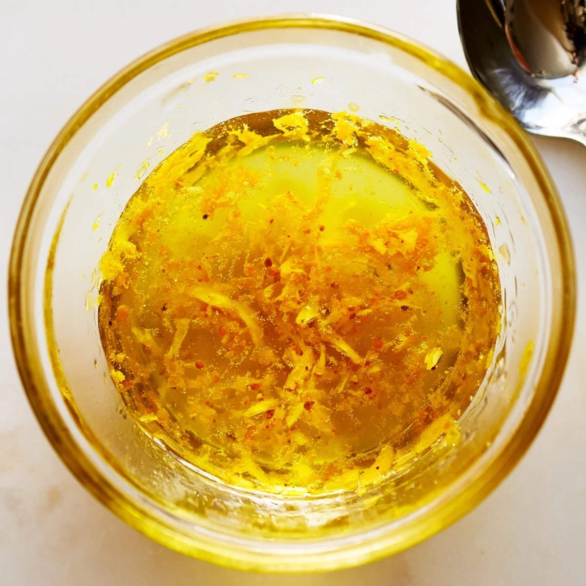 Use a glass jar with a really tight seal to keep those fresh citrus flavors vibrant. The oil will eventually go rancid after about a week, so make smaller batches more frequently rather than storing it too long.