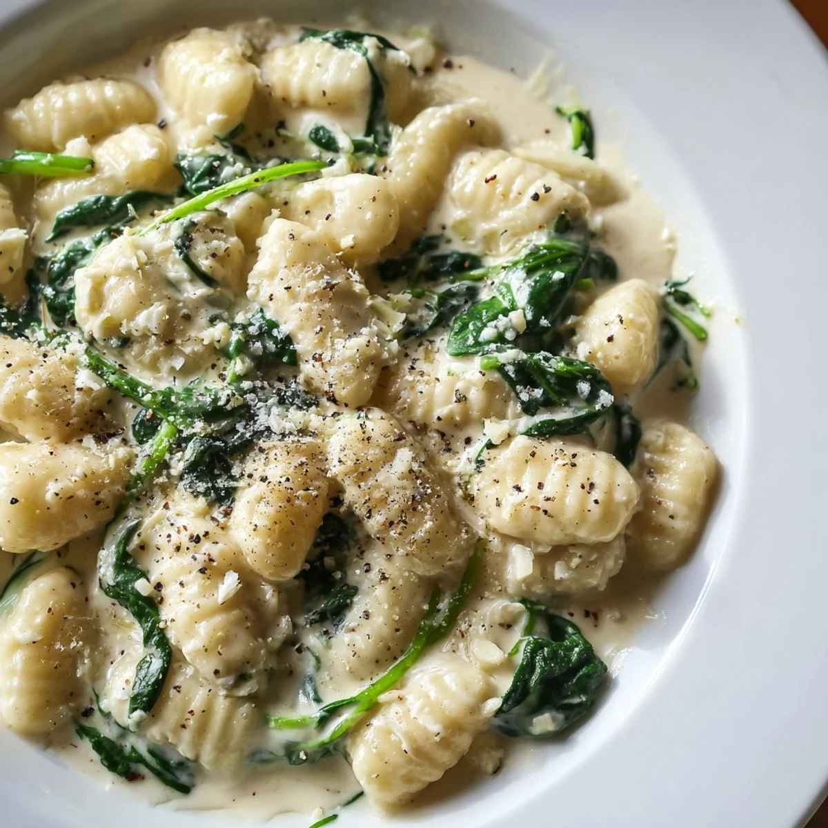 Soft potato gnocchi float to perfection before being enveloped in a velvety cream sauce. Fresh baby spinach wilts into the rich base, while crumbled feta adds bursts of salty tang throughout. This satisfying vegetarian dish brings European comfort to your table in just 25 minutes, perfect for busy weeknights when you crave something hearty yet simple.