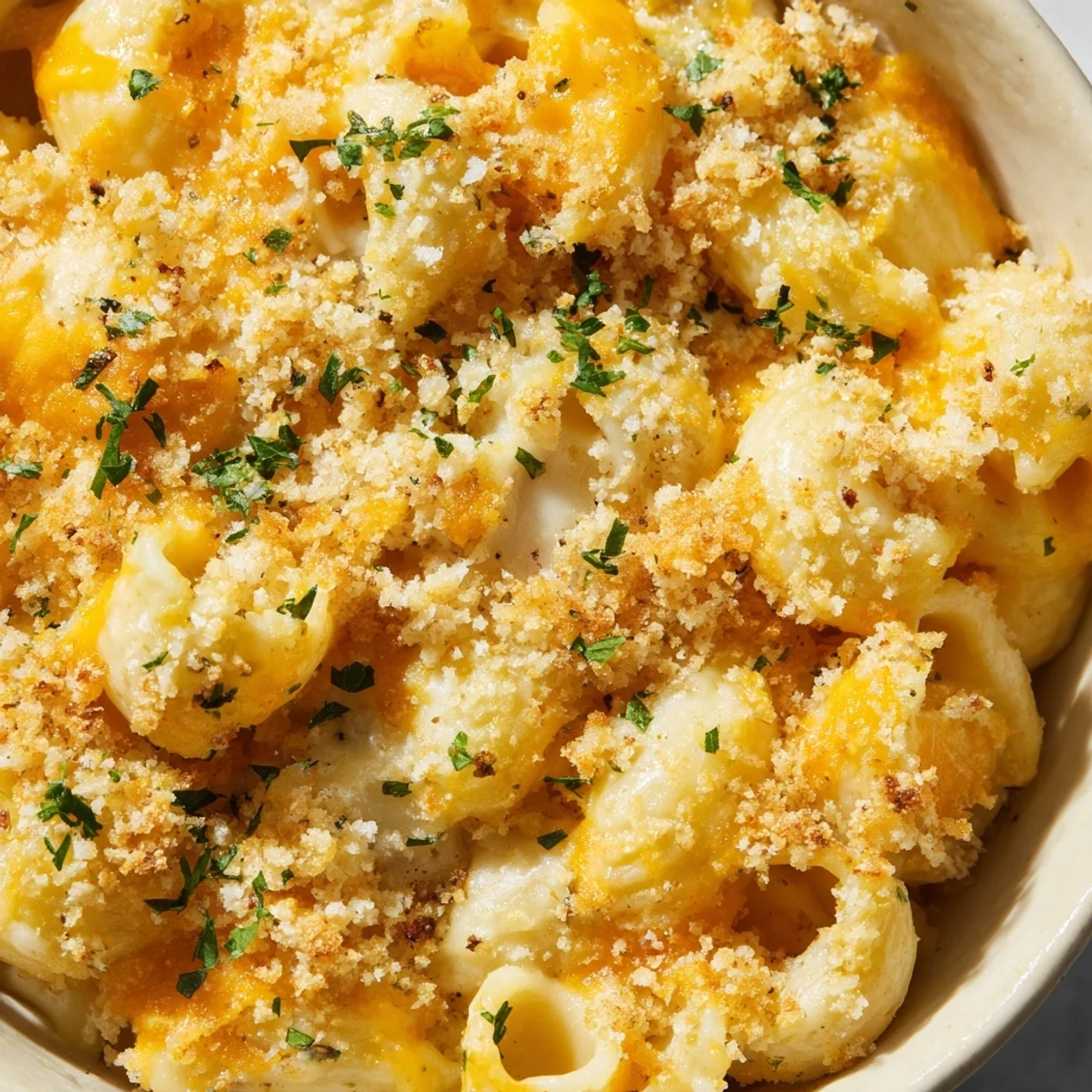 This indulgent baked macaroni combines sharp cheddar, Gruyère, and mozzarella for an incredibly rich and creamy experience. The dish features a velvety homemade cheese sauce seasoned with Dijon mustard and aromatic spices, topped with buttery parmesan breadcrumbs that bake to golden perfection.