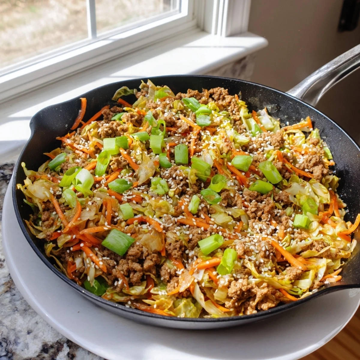 Enjoy all the beloved flavors of classic egg rolls without the wrapper. This satisfying skillet dish combines browned ground pork with shredded cabbage, carrots, and aromatic garlic and ginger. A simple sauce of soy sauce, rice vinegar, and sesame oil ties everything together in under 30 minutes. Perfect for keto and low-carb lifestyles, this one-pan meal delivers crunch, savory depth, and satisfying protein in every bite.