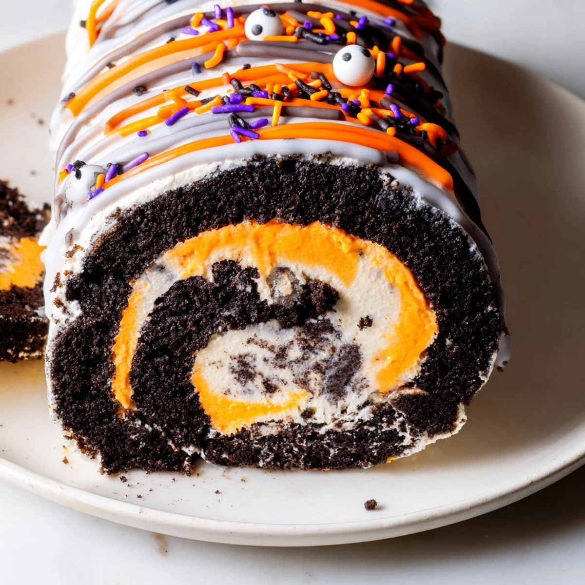 This festive Halloween roll combines crushed sandwich cookies with a creamy whipped filling in eye-catching orange and purple hues. The no-bake preparation comes together in under 30 minutes, making it perfect for last-minute party planning. Simply crush the cookies, mix with cream cheese and butter, then roll out the dough and spread with colored whipped cream before rolling into a log.